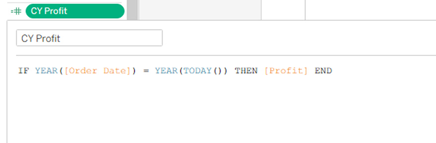 Everything used proper Tableau functions (YEAR(), DATETRUNC(), TODAY(), etc.). Naming was clean. Logic was sound.